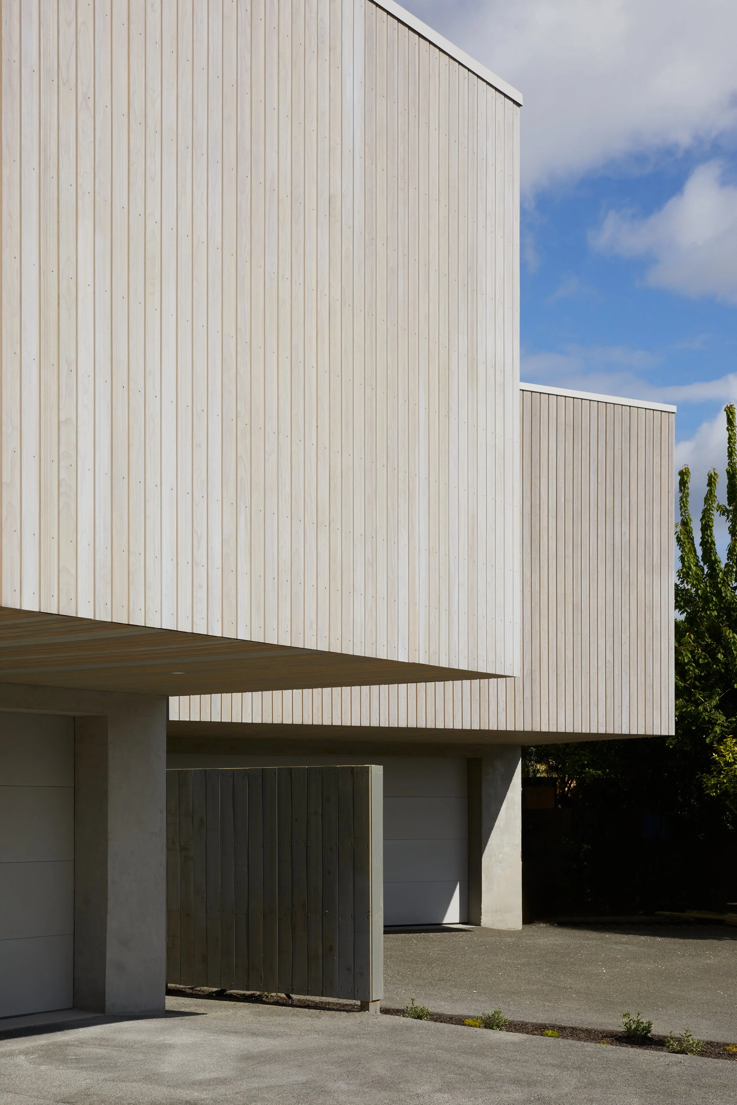 Located in Travis Country, Christchurch there were a couple of set backs with the land zoning. Firstly, Christchurch being the land of the earthquakes the section the two homes were built on is TC3 and then with the new finished floor level requirements we had to get creative. This posed extravagant cantilevers over four car garaging the best option. It also meant we could maximise the spectacular outlook over the reserve and wetlands.